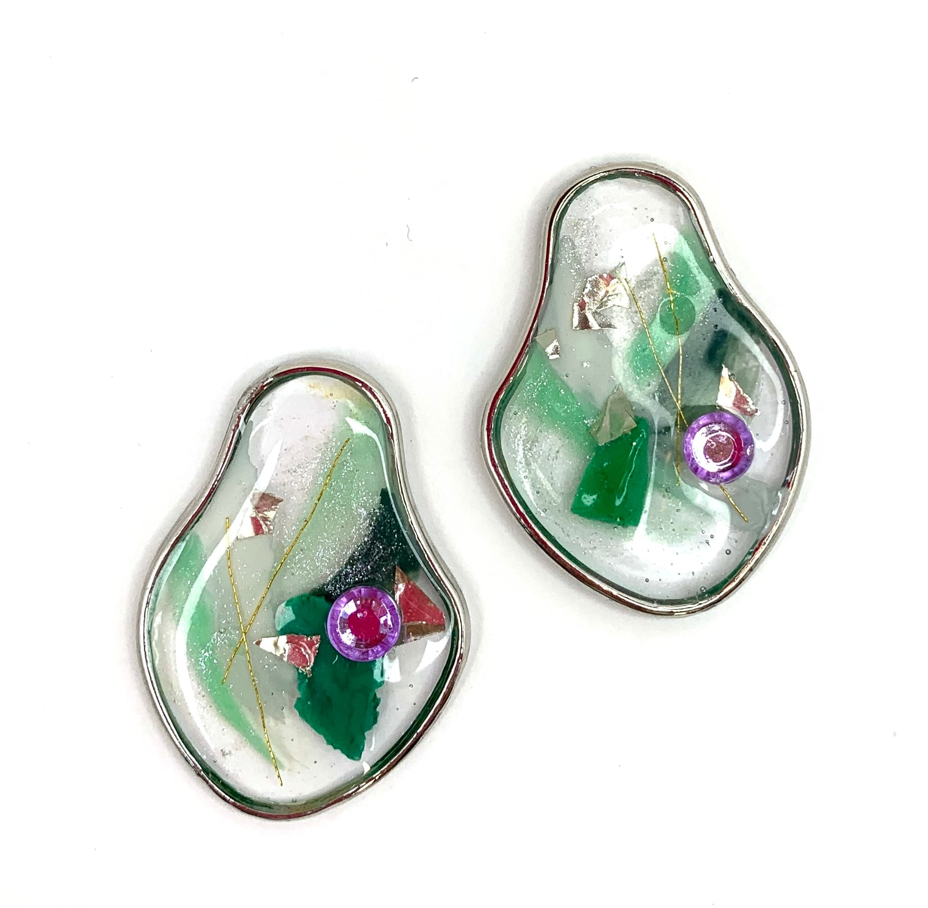 フリーハンドで描いたカラフルなペイントに、海洋プラスチックをデザインにしたペイントピアス。