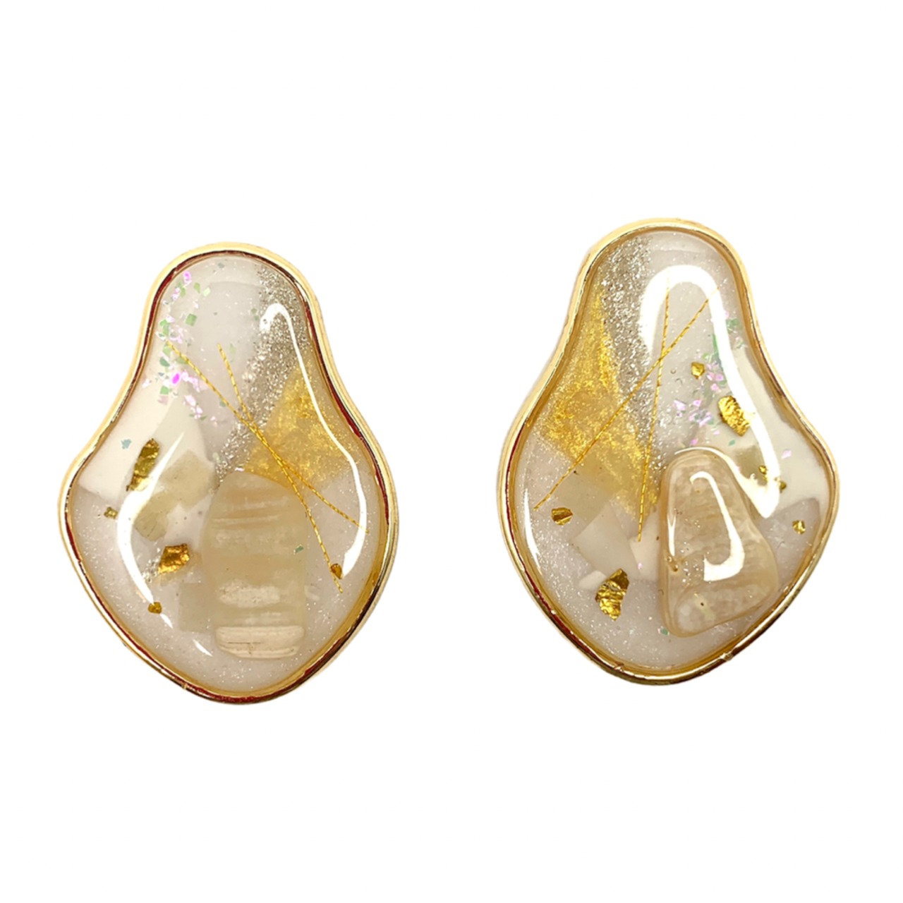 フリーハンドで描いたカラフルなペイントに、海洋プラスチックをデザインにしたペイントピアス。