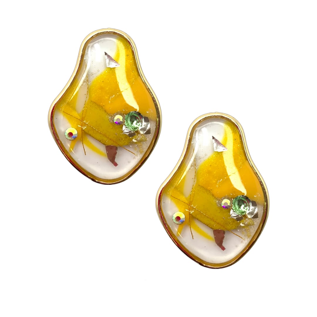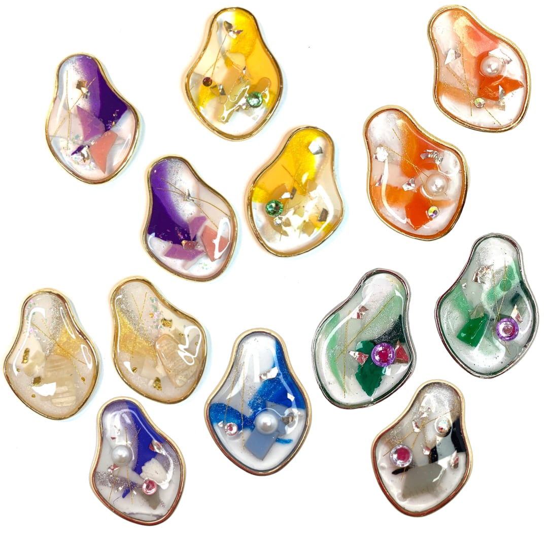 フリーハンドで描いたカラフルなペイントに、海洋プラスチックをデザインにしたペイントピアス。
