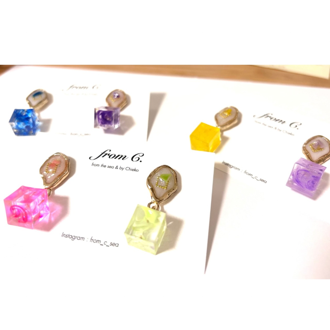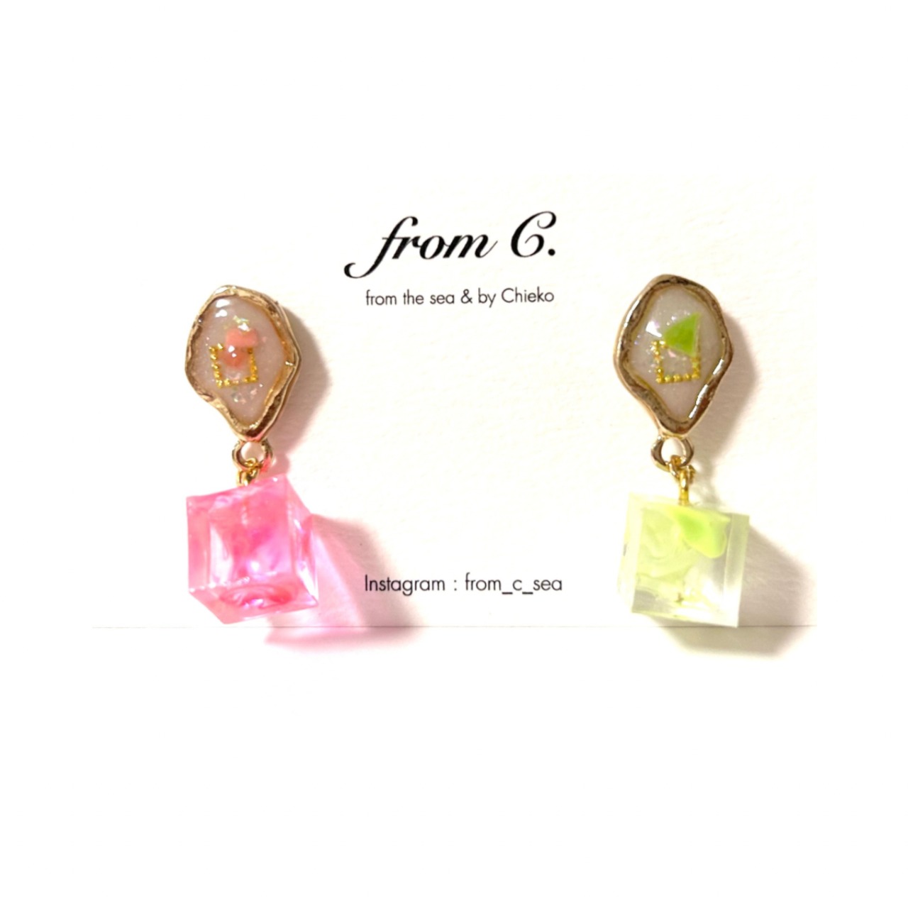 ネオンピンクとグリーンの組み合わせが可愛い、ツーカラーの組み合わせピアス